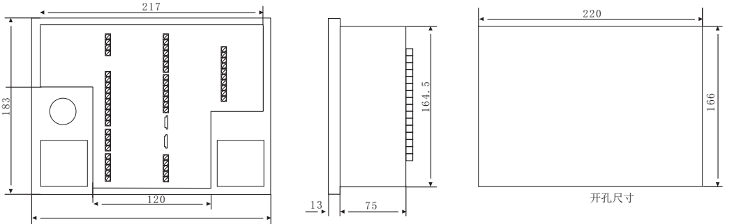 安裝方式:屏裝(開孔尺寸:220×166mm) |
