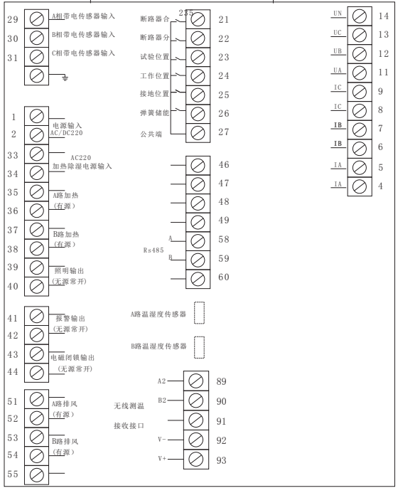 斷路器位置指示:無源觸點輸入,工作位置觸點閉合時,紅色垂直模擬條發光,指示斷路器處于工作位置,試驗位置觸點閉合時,綠色水平模擬條發光,指示斷路器處于試驗位置 |